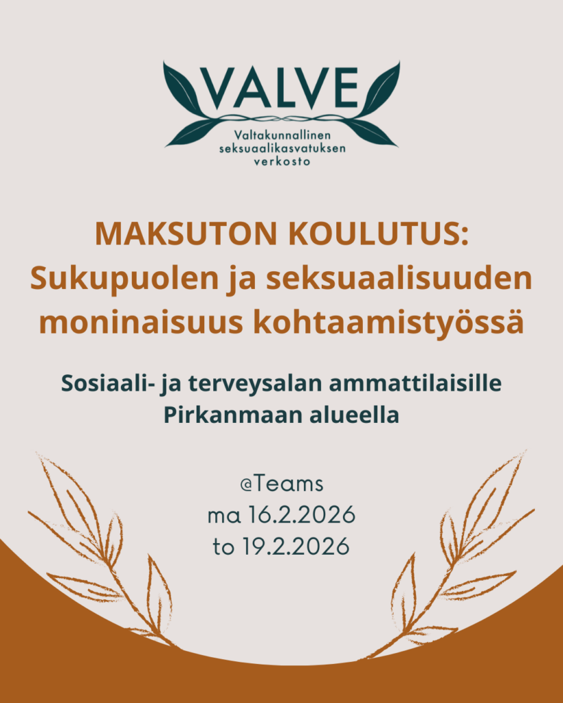 Valtakunnallinen seksuaalikasvatuksen verkosto VALVE ry on vuonna 2021 perustettu yhdistys, jonka päätavoite on edistää inklusiivisiin käytäntöihin perustuvaa seksuaalikasvatusta ja parantaa tarjottavan seksuaalikasvatuksen tasoa. Inklusiivinen lähestymistapa seksuaalikasvatukseen tarkoittaa, että VALVE ry tavoittelee tilannetta, jossa seksuaalikasvatuksessa on huomioituna moninaiset erilaiset ihmisryhmät siten, että moninaisuus on lähtökohta ja sisäänkirjoitettu asia seksuaalikasvatuksen käytänteissä. Yhdistys pyrkii tähän tilanteeseen tekemällä vaikuttamistyötä rakenteellisella tasolla sekä kouluttamalla ammattilaisia ja asiantuntijoita, joiden työtä seksuaalisuuden teemat eri tavalla koskettavat. Yhdistys järjestää tapahtumia seksuaalisuuteen liittyvistä teemoista ja tekee yhteistyötä esimerkiksi järjestöjen, päättäjien, ammattimaisten seksuaalikasvattajien sekä eri alojen ammattilaisten ja asiantuntijoiden kanssa.