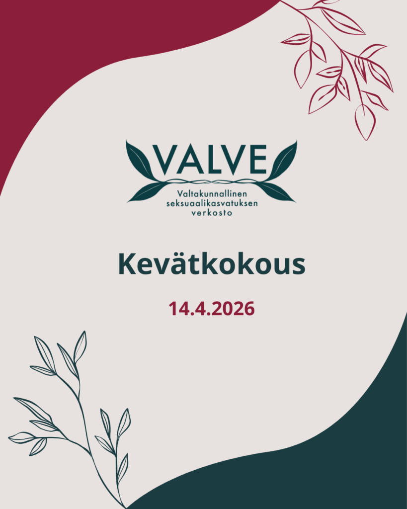 VALVE ry:n hallitus päätti vuoden 2026 Seksuaalikasvatuksen päivien päivämäärän, tsekkaa päivä linkin takaa! Lue samalla myös VALVE ry:n yhteistyöverkostokuulumiset sekä mm. kuvaus järjestökoordinaattori RIikka Pöntinen tammikuun vierailusta Opetushallituksessa opetus- ja kasvatusalan tasa-arvo- ja yhdenvertaisuustoimijoita yhteen kokoavan YHTEYS-verkoston kanssa.